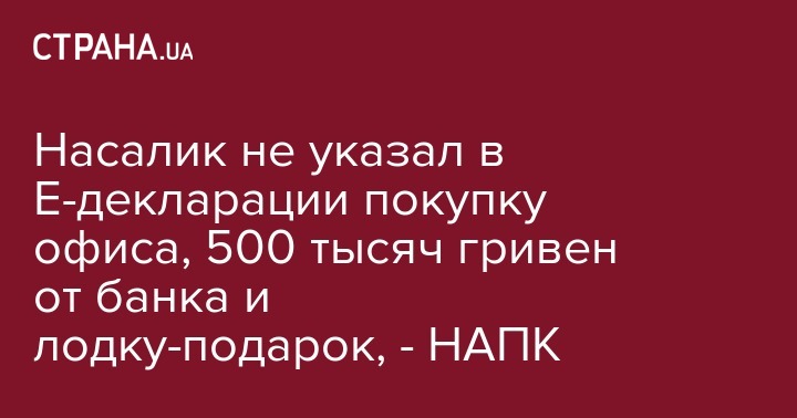 НАПК установило, что Насалик подал недостоверные сведения, которые отличаются от достоверных на сумму более 250 прожиточных минимумов для трудоспособных лиц (с 1 декабря один минимум составляет 1 762 гривны).