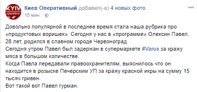 Это уроженец Червонограда, который находится в розыске Печерским управлением полиции за кражу красной икры на сумму 15 тысяч гривен.