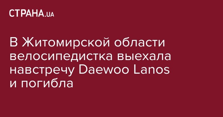 Как отмечается в сообщении, авария произошла  около 8 утра. Предварительно установлено, что водитель автомобиля Daewoo Lanos, 59-летний житель Овруча, совершил наезд на велосипедистку, которая внезапно выехала на полосу встречного движения. В результате аварии велосипедистка, 51-летняя местная жительница, погибла на месте происшествия.