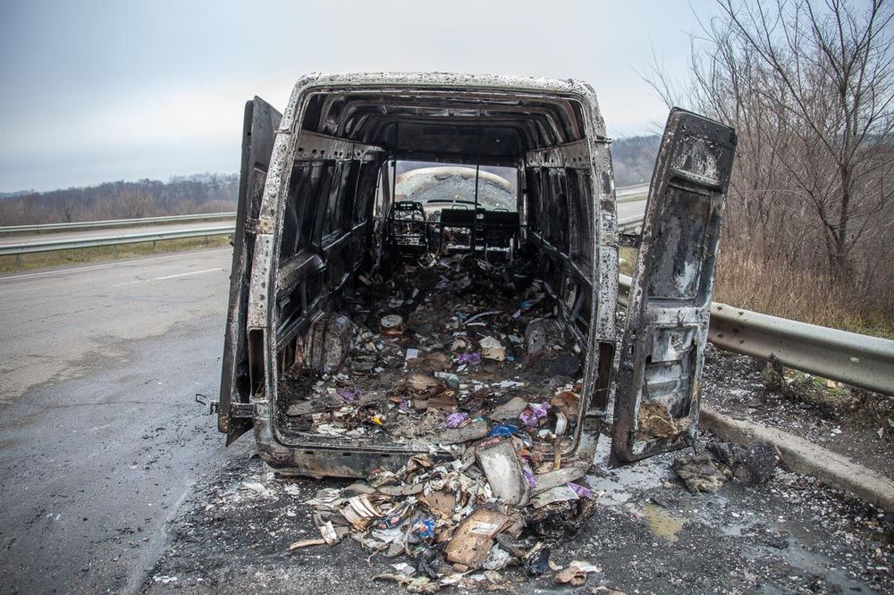 На Криворожской трассе выгорел дотла Mercedes Sprinter