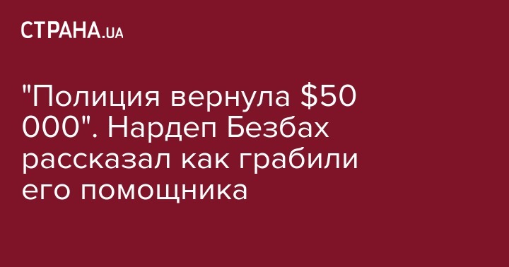 Полиция вернула украденные накануне деньги помощнику внефракционного народного депутата Украины Якову Безбаху. Об этом сообщает "Обозреватель".