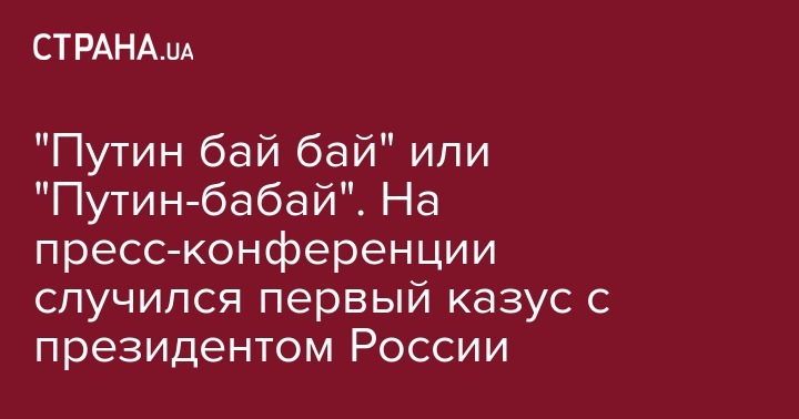На вопрос журналиста: "почему за почти 20 лет вашего правления не появился нормальный влиятельный кандидат от оппозиции, вообще нет политика номер два. Насколько вам интересно участвовать в выборах без сильного конкурента", - Путин ответил: "Чтобы обострить еще ваш вопрос я видел, там девушка плакат поднимала с надписью "Путин Байбай", давайте заострим внимание на этом".
