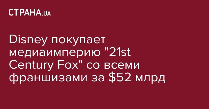 Компания Walt Disney заявила о покупке медиаимперии медиамагната Руперта Мердока 21st Century Fox за 52,4 млрд долларов.
