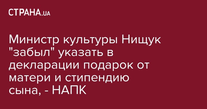 Нарушения в электронной декларации министра культуры Евгения Нищука за 2016 год обнаружило Национальное агентство по предотвращению коррупции (НАПК).