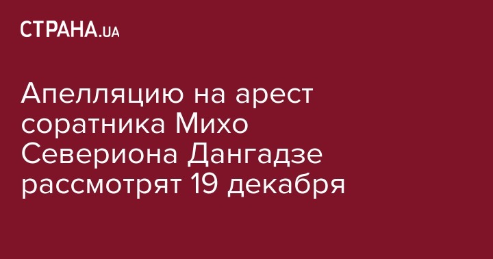 Рассмотрение апелляции соратника Михаила Саакашвили Севериона Дангадзе назначено на 19 декабря.
