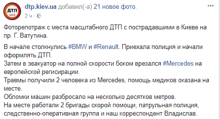 Ночью, 15 декабря, в Киеве на проспекте Ватутина произошло ДТП с пострадавшими. Об этом в Facebook сообщает dtp.kiev.ua.