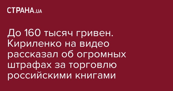 За распространение без официального разрешения книжной продукции из России власти ее всю будут изымать, а продавца штрафовать. Об этом заявил в своем видеообращении на канале Youtube вице-премьер-министр Украины Вячеслав Кириленко.