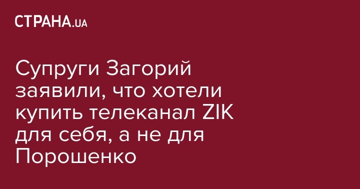 Супруги Загорий заявили, что хотели купить телеканал ZIK для себя, а не для Порошенко