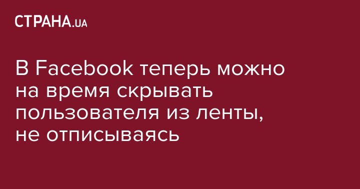 В Facebook теперь можно на время скрывать пользователя из ленты, не отписываясь