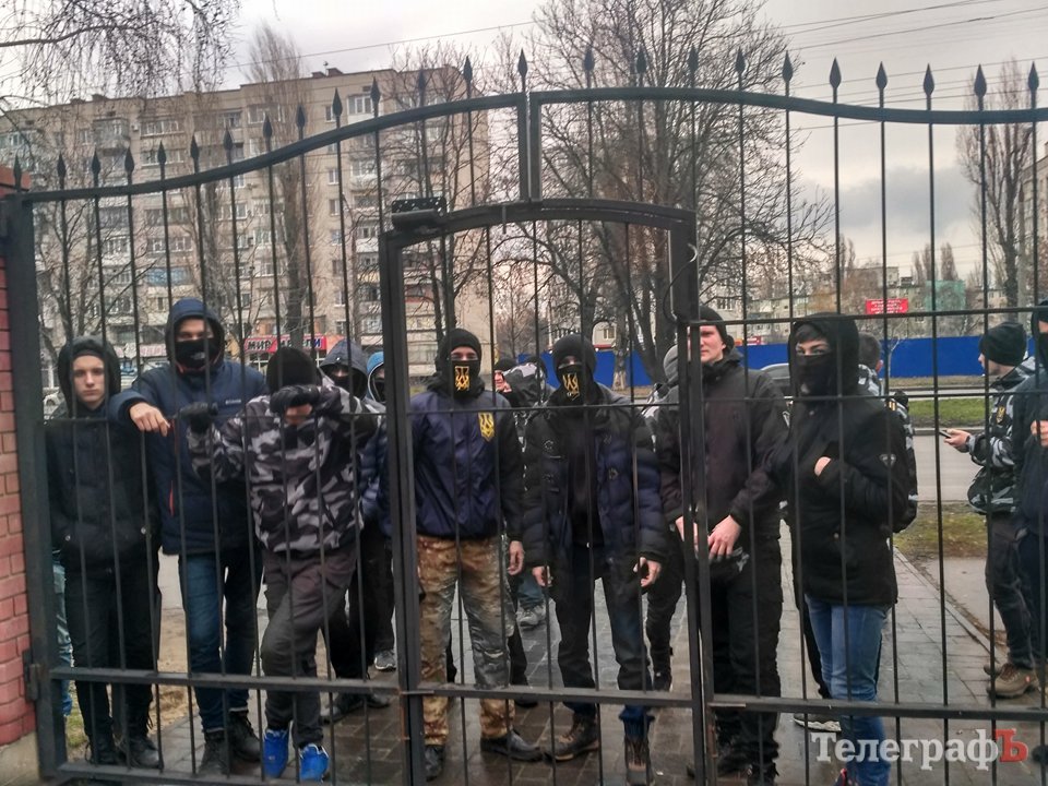 За парнем в отеделение полиции поехали его товарищи, требуют отпустить, принесли под забор участка шины. В отделение полиции приехали двое депутатов Кременчугского городского совета Татьяна Сидерка и Валентин Курченко-Гай. Они обеспокоены ситуацией, ведь вопрос выносится на сессию и они не хотят, чтобы такое повторилось в сессионном зале.