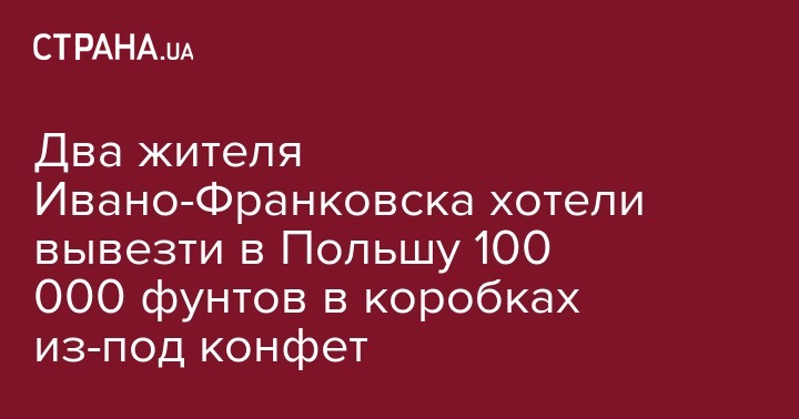 В пункте пропуска "Шегини" на украинско-польской границе сегодня, 16 декабря, задержали двух украинцев, которые пытались в коробках из-под конфет вывезти в Польшу 100 тыс. фунтов стерлингов и 400 тыс. злотых. Об этом сообщает Госпогранслужба.