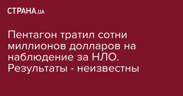 Пентагон потратил несколько сотен миллионов долларов на наблюдение за НЛО. Об этом сообщает The New York Times.