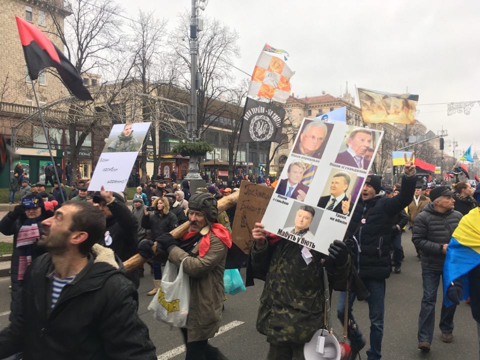 13:00  В ходе шествия по Крещатику плотность лозунгов и воззваний резко выросла. Киев призывают вставать, Порошенко - убрать руки от НАБУ и пройти на нары (которые будут рядом с нарами Януковича). Олигархам отдельно рекомендуется покинуть Украину.