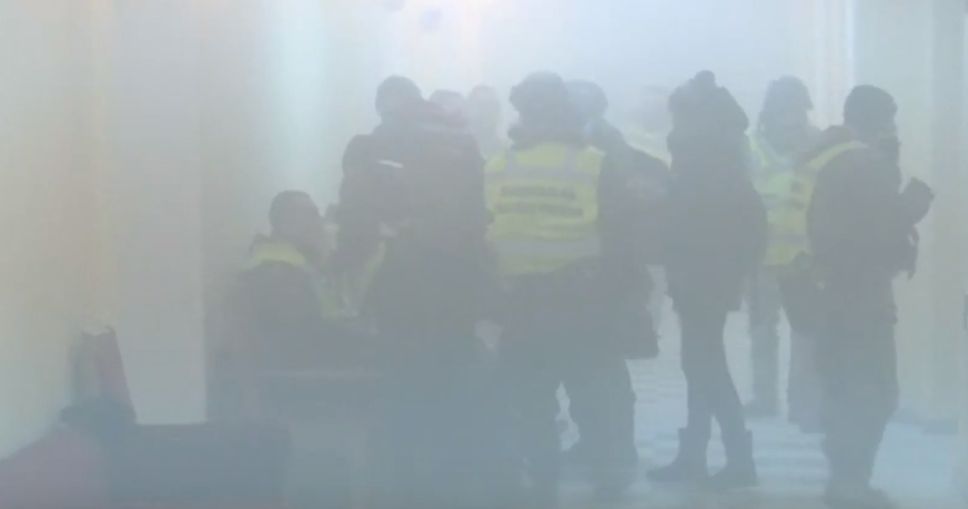 15:50  Прозвучал какой-то взрыв. Нацгвардеец говорит, что газ распыляли в помещение с улицы.