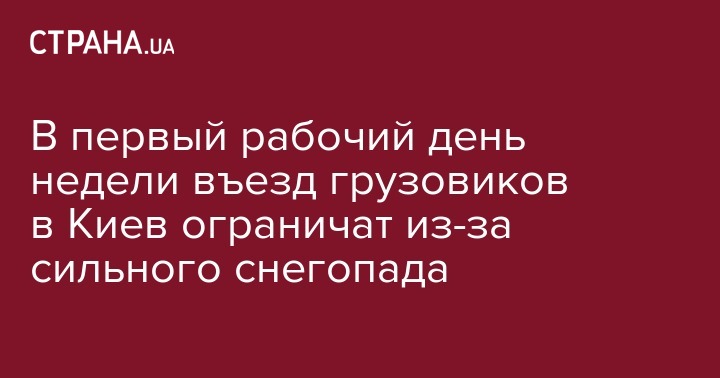 "Это позволит минимизировать возникновение заторов на автодорогах и обеспечить движение снегоуборочной техники. Просим водителей учесть эту информацию при формировании маршрутов через Киев", - говорится в сообщении.