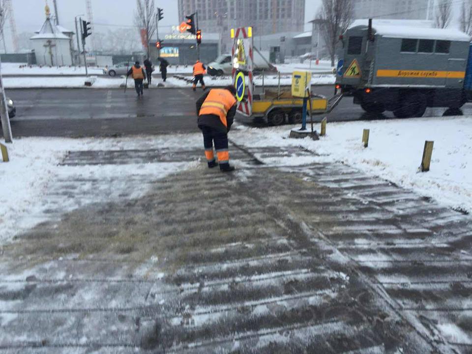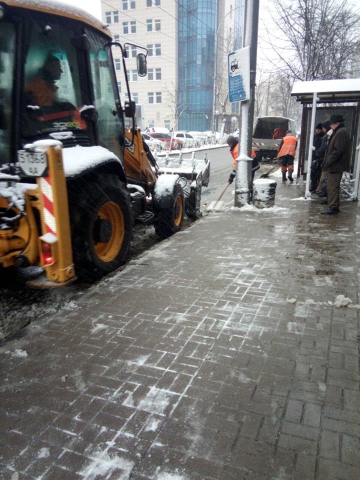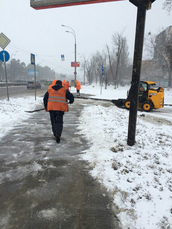 Техника коммунальной корпорации "Киевавтодор" расчищает снег на основных магистралях столицы, тротуарах, жилищно-коммунальных участков (ЖЭКи) и межквартальных проездах, работает также техника КО "Киевзеленстрой".
