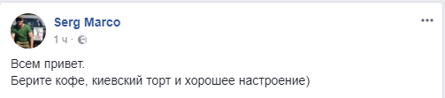 Там же отметился Серж Марко: "Всем привет. Берите кофе, киевский торт и хорошее настроение)".