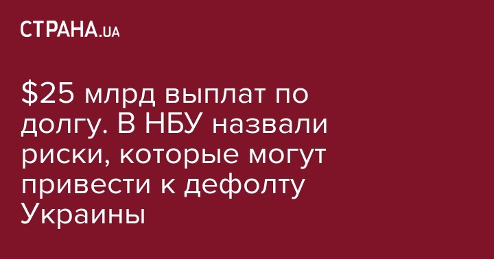 $25 млрд выплат по долгу. В НБУ назвали риски, которые могут привести к дефолту Украины