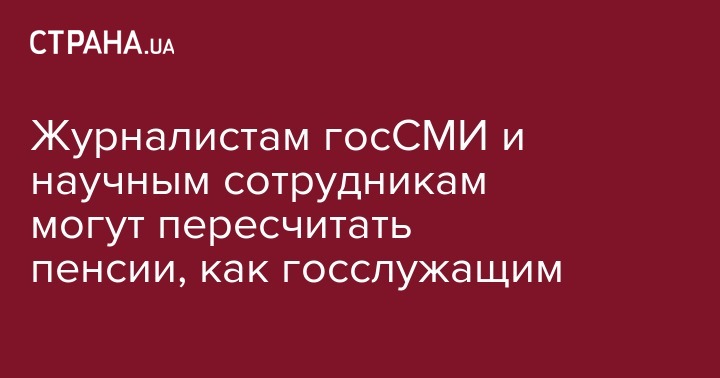 Также эти изменения касаются журналистов государственного или коммунального средства массовой информации, в отношении которых, согласно тексту проекта закона, применяются нормы, методика и порядок перерасчета пенсии государственному служащему. Эта норма также распространяется на журналиста реформированного печатного средства массовой информации, который работал в таком средстве массовой информации до завершения процесса его реформирования.