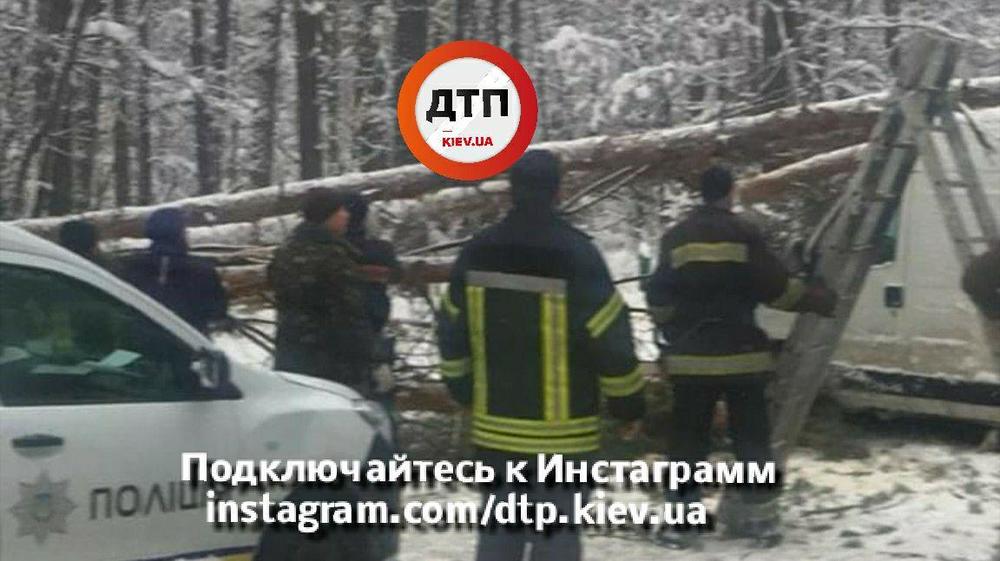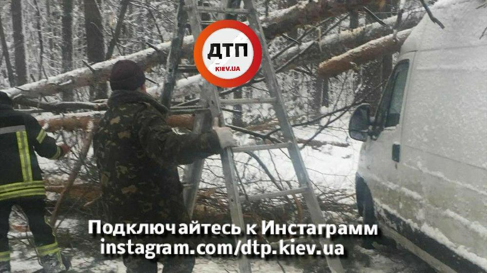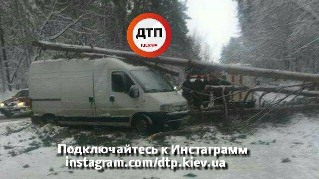 На Житомирской трассе затор из-за рухнувшего на микроавтобус дерева