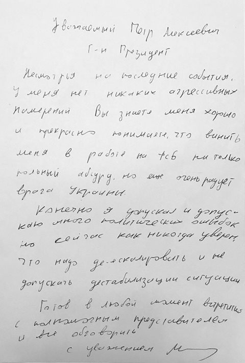 С тем, что это письмо есть, не спорил никто - стороны расходились только в оценках этого текста. Сторонники Порошенко говорили, что это покаяние, а Михо - что призыв к диалогу.