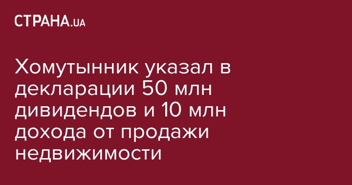 Хомутынник указал в декларации 50 млн дивидендов и 10 млн дохода от продажи недвижимости