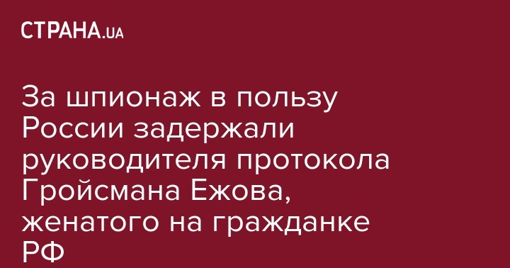 Сегодня Служба безопасности Украины задержала заместителя руководителя протокола премьер-министра Украины Станислава Ежова за шпионаж в пользу России. Об этом пишут "Украинские новости".