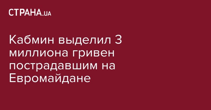 Кабинет министров Украины выделил 3 млн грн 22 гражданам, которые получили легкие и средние телесные повреждения в ходе массовых акций протеста в центре Киева во время Евромайдана.