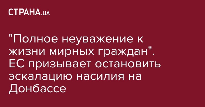 "Полное неуважение к жизни мирных граждан". ЕС призывает остановить эскалацию насилия на Донбассе
