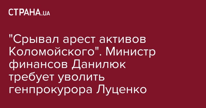 Министр финансов Александр Данилюк требует отставки генпрокура Юрия Луценко за его попытки помешать аресту активов Игоря Коломойского по делу Приватбанка. Его слова приводит "Громадське".