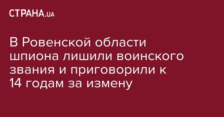 Корецкий районный суд Ровенской области признал виновным и приговорил к 14 годам лишения свободы с лишением военного звания гражданина Украины, который по заданию сотрудника Главного управления Генштаба ВС РФ завербовал украинского военнослужащего для сбора сведений, представляющих государственную тайну.