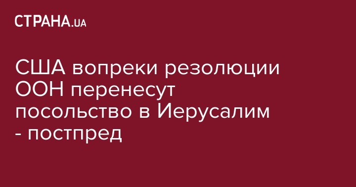 США вопреки резолюции ООН перенесут посольство в Иерусалим - постпред