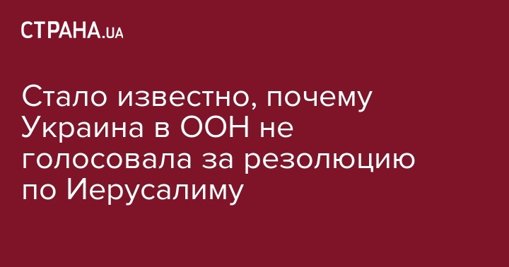 Власти Украины прислушались к предупреждениям президента США и главного хасидского раввина Украины не поддерживать резолюцию о статусе спорного Иерусалима во время голосования в Генеральной Ассамблее ООН. Представитель Украины просто вышел из зала.