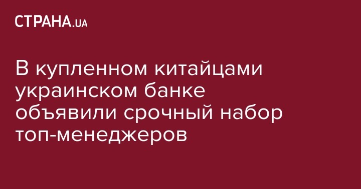 В купленном китайцами украинском банке объявили срочный набор топ-менеджеров