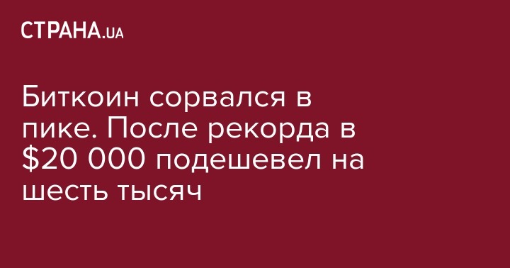 После рекорда в $20 тысяч курс биткоина подешевел уже до $14 тысяч. Только за последние сутки он потерял 17% в цене.