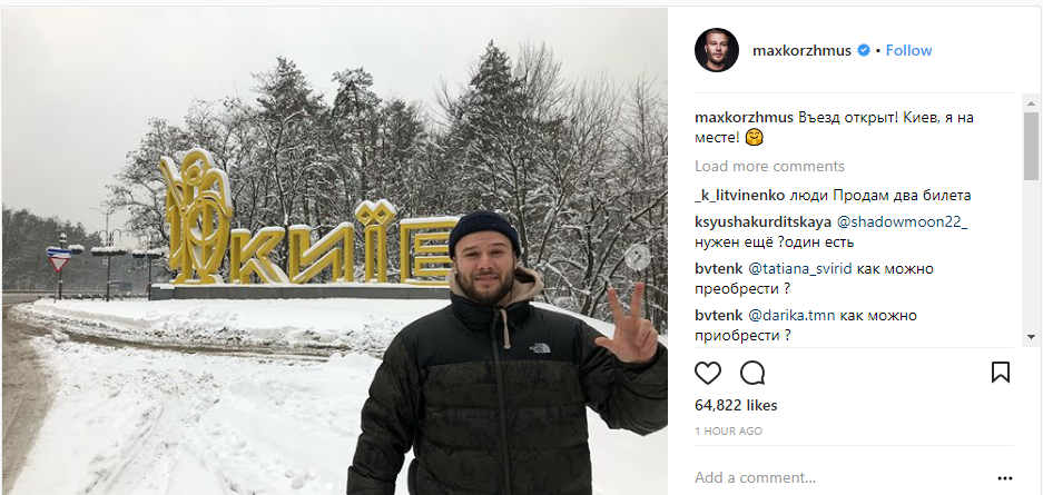 "Въезд открыт! Киев, я на месте!" - написал Корж.
