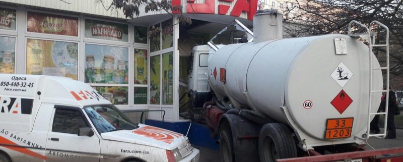 Разбил "Идеал". В Одессе бензовоз протаранил магазин продуктов