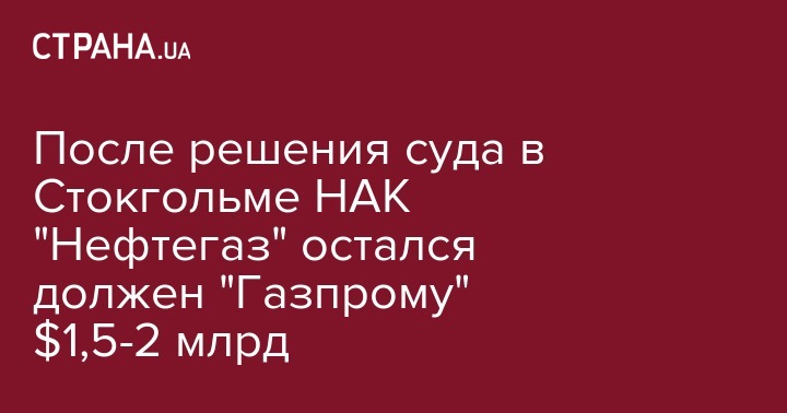 Стокгольмский арбитраж сегодня принял окончательное решение по спору НАК "Нефтегаз Украины" и "Газпрома" по контракту купли-продажи газа, подписанного в 2009 году. "Нафтогаз" заявил, что выиграл суд над российским "Газпромом". В ответ российская сторона пояснила, что суд оставил в силе основные положения контракта. По итогу, как пишут "Украинские новости", НАК остался должен россиянам от $1,5 млрд до $2 млрд.