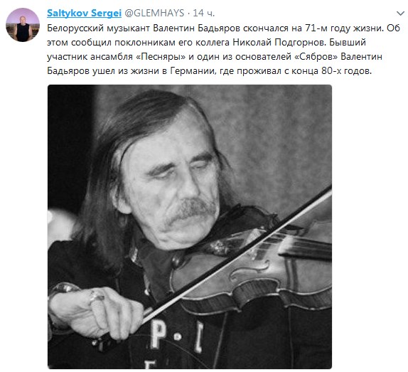 Бадьяров был скрипачом первого состава группы "Песняры", а также участником "Поющих гитар".