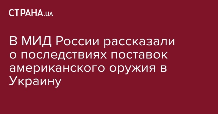 В МИД России рассказали о последствиях поставок американского оружия в Украину