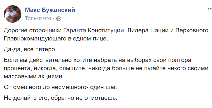 "Дорогие сторонники Гаранта Конституции, Лидера Нации и Верховного Главнокомандующего в одном лице.