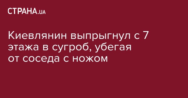 В Деснянском районе Кива мужчина выпрыгнул из окна 7 этажа, убегая от соседа с ножом. Об этом сообщает пресс-служба полиции Киева.
