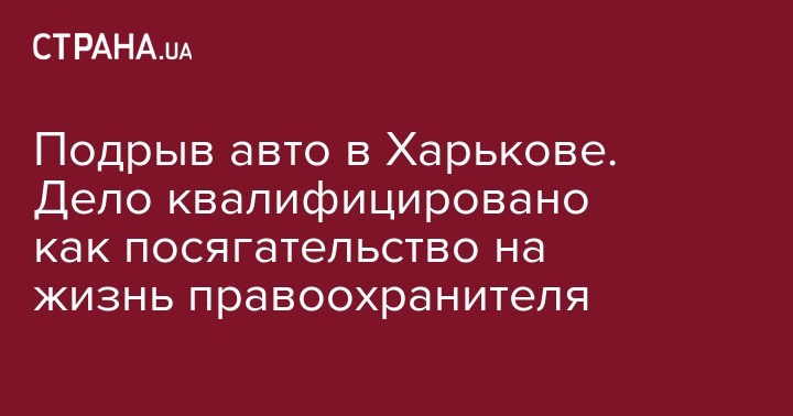 Подрыв джипа начальника отдела полиции в Харькове силовики квалифицировали по ка посягательство на жизнь работника правоохранительного органа.