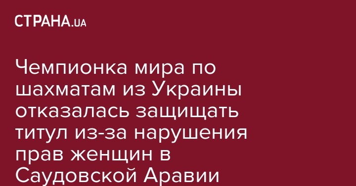 Чемпионка мира по быстрым шахматам и блиц-шахматам 2016 года представительница Украины Анна Музычук отказалась играть на чемпионате мира в Саудовской Аравии.