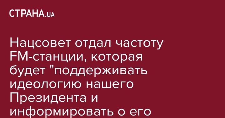 Нацсовет отдал частоту FM-станции, которая будет "поддерживать идеологию нашего Президента и информировать о его реформах"