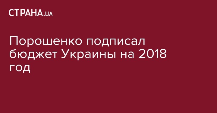 Президент Петр Порошенко подписал закон "О государственном бюджете" на 2018 год.