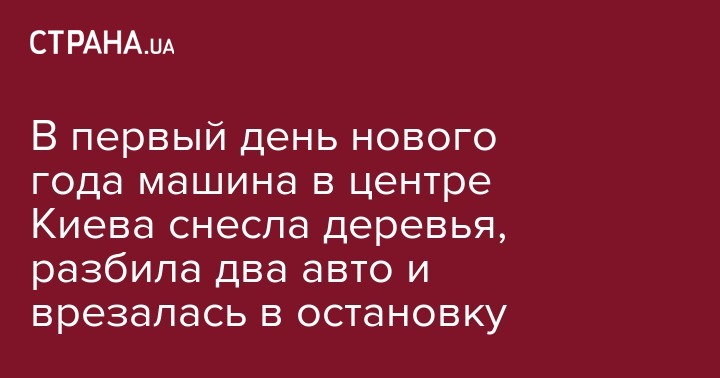В первый день нового года машина в центре Киева снесла деревья, разбила два авто и врезалась в остановку