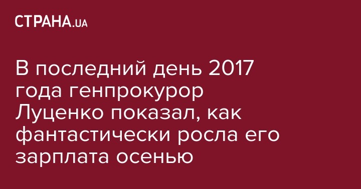 В декабре 2017 года официальная зарплата Генпрокурора Юрия Луценко достигла 218,5 тысяч гривен. Такие данные он указал в своей е-декларации 31 декабря 2017.