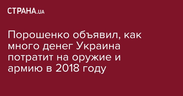 8 декабря 2017 года приветствуя принятие Верховной Радой государственного бюджета на 2018 год, Порошенко отмечал: "На армию предусмотрено 86 млрд грн, что почти на 25% больше, чем в текущем году. Пятая часть бюджета будет использована на вооружение и военную технику, что на 34% больше, чем в этом году".