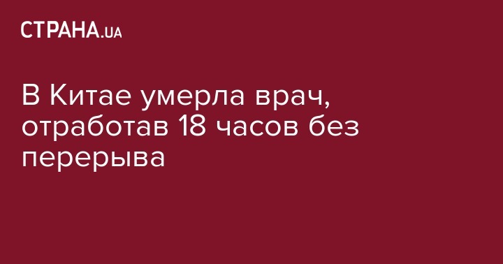 В Китае умерла 43-летняя женщина-врач, отработав 18 часов без перерыва.